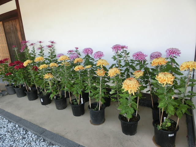 松陰記念館の玄関と館内や塾舎に計14鉢を提供しています。菊の大輪3本立ては塾舎の光景に非常にマッチしており圧巻です。連日、来館の皆様が感動されお褒めの言葉なども頂いています。